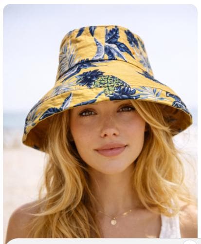 Floral printed beach wide brim hat floral print. 100% Cotton.