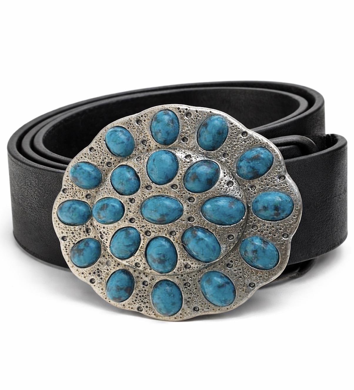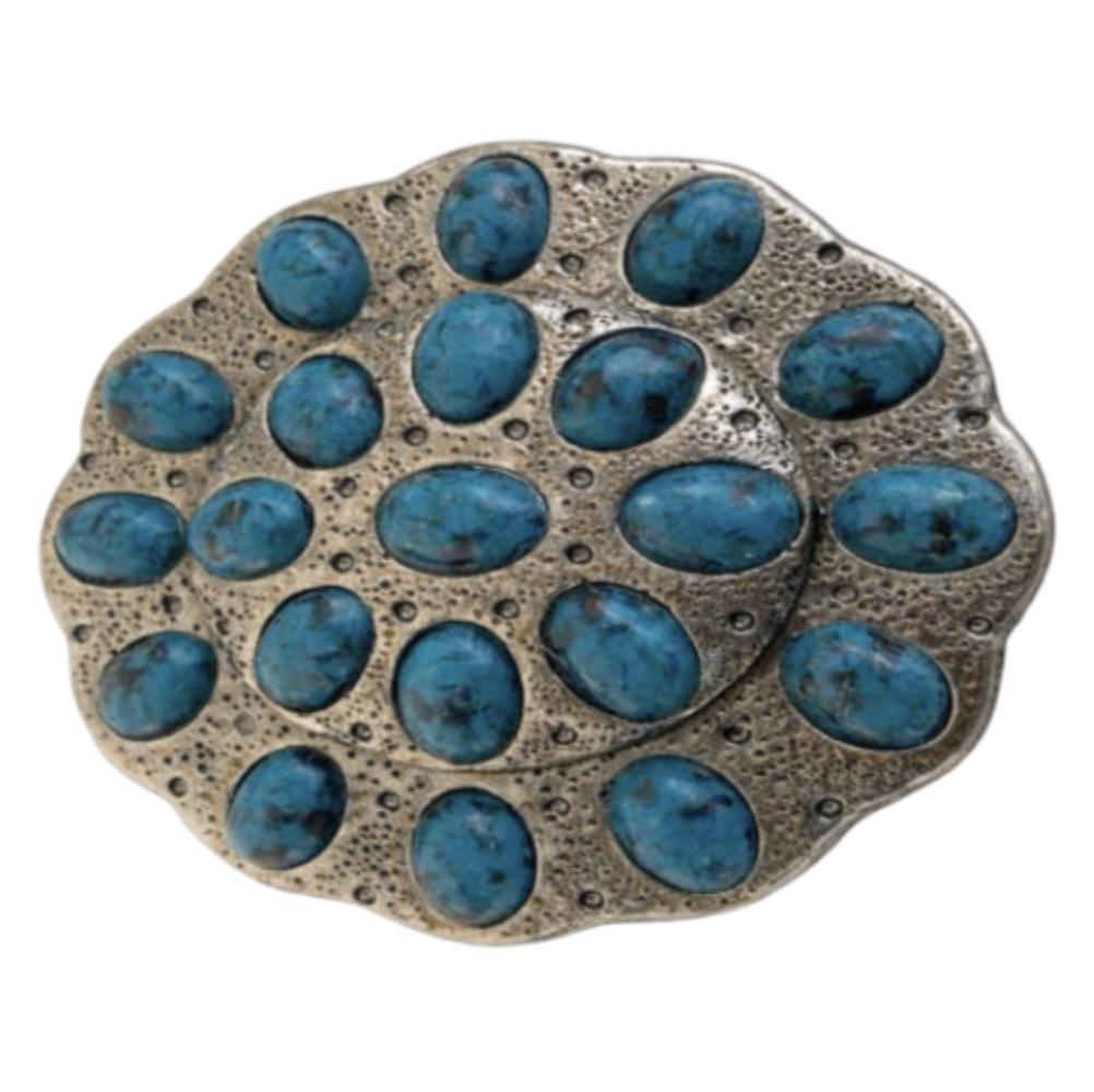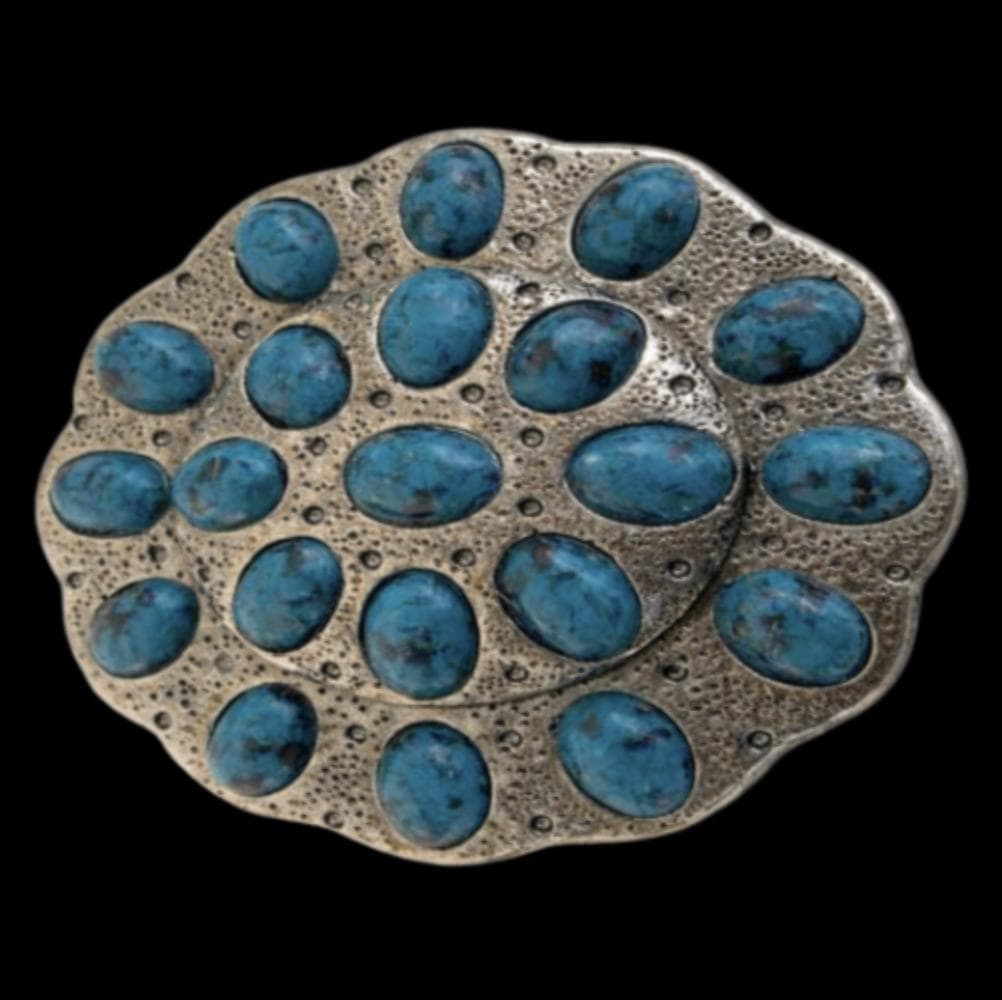 Silver Tone and Blue Stone Western Belt Buckle