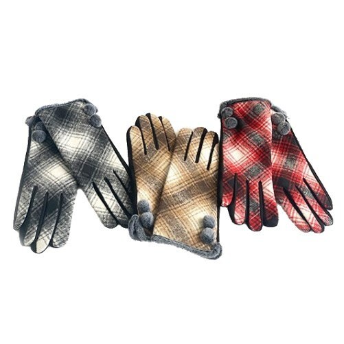 Women's Warm Plaid Check Pattern Smart Touch Screen Faux Fur Trim Winter Gloves