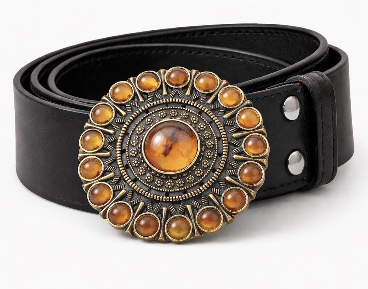 Belt Buckle Flower Amber Stones Women’s Flowers Belt Buckles