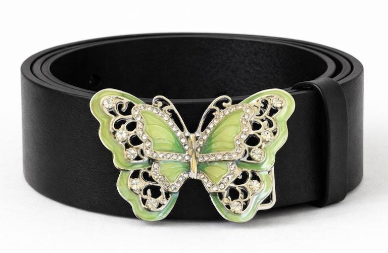 Butterflies Green Glitter Rhinestone Butterfly Belt Buckle