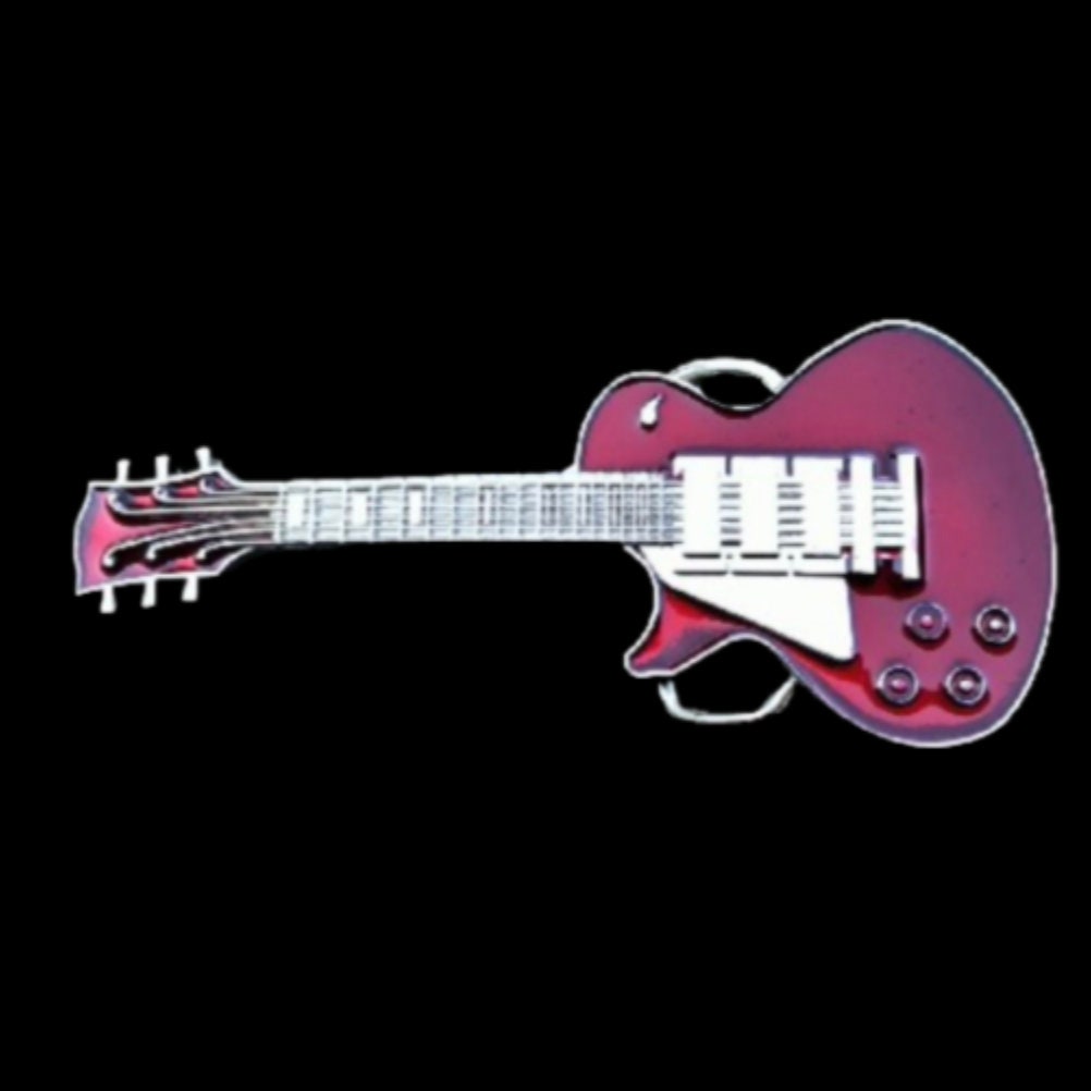 Burgundy Guitar Rock n Roll Star Band Music Belt Buckle