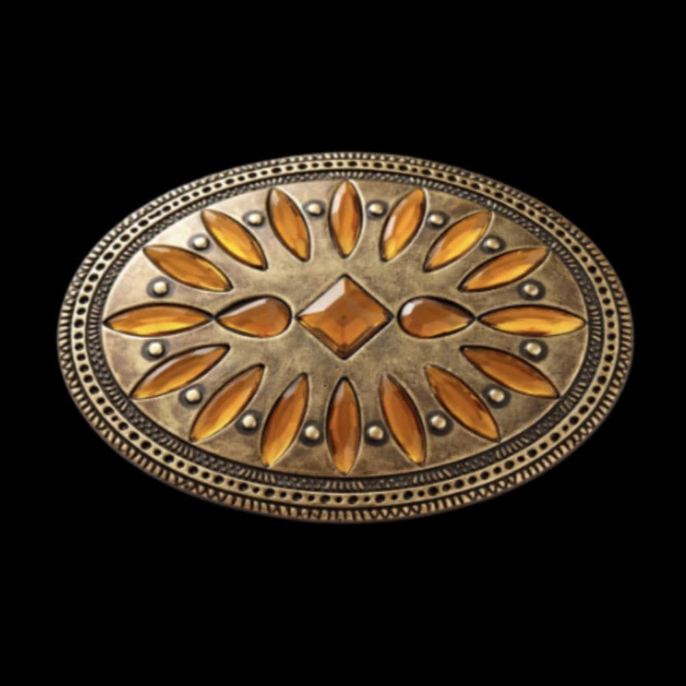 Brown Stones Flower Floral Western Belt Buckle