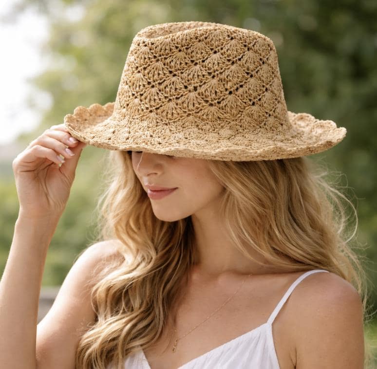 Crochet Style Straw Vented Sombrero Women's Summer Hat