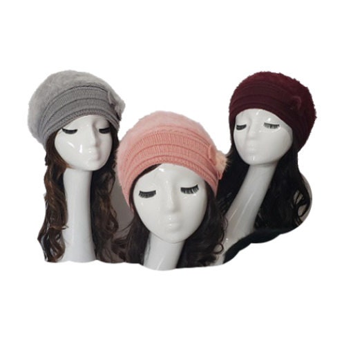 Women's Girl Casual Warm Knit Short Brim Fall Winter Snow Beret Hat Cap