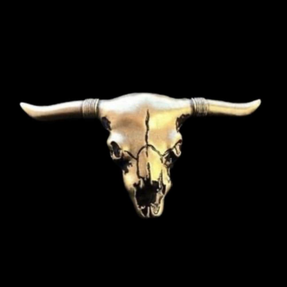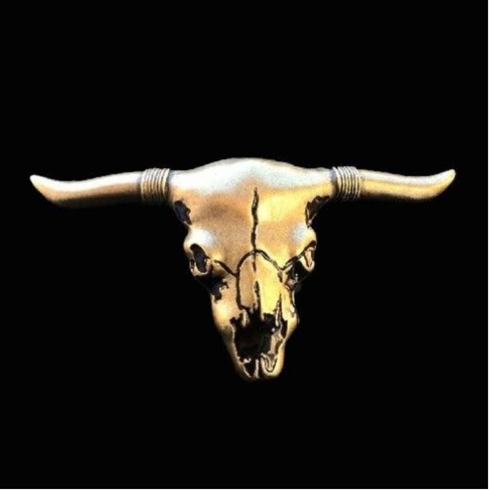 Steer Skull Head & Horns Texas Longhorn Western Pewter Belt Buckle