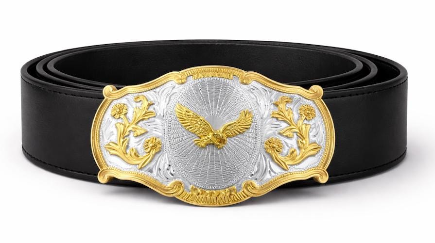 Belt Buckle Size: 3.75"(h) x 5.5"(w)
