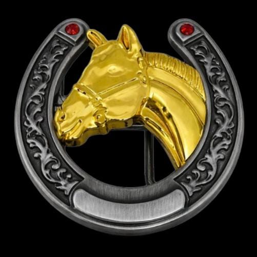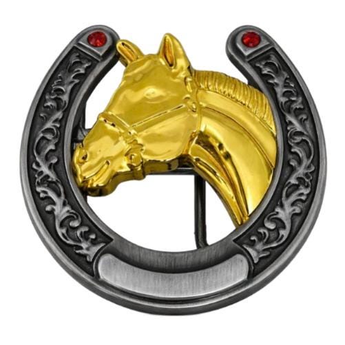 TWO TONED GOLD SILVER HORSE HORSEHEAD WESTERN BELT BUCKLE