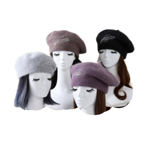 Unique Design Women's Wool Felt Beret with Pin Winter Casual Pillbox Hat