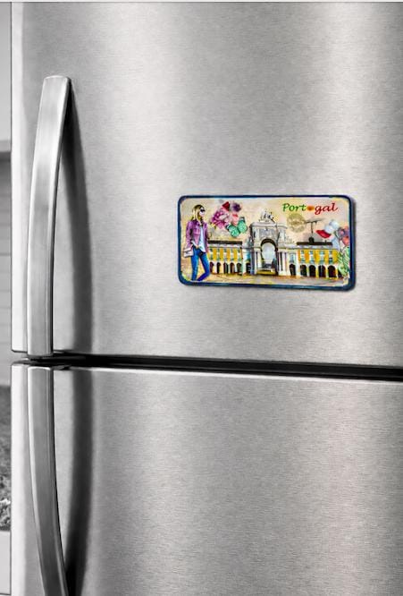 A meticulously crafted magnetic Postcard showcasing the iconic landmarks of Lisbon, Portugal's vibrant capital city.