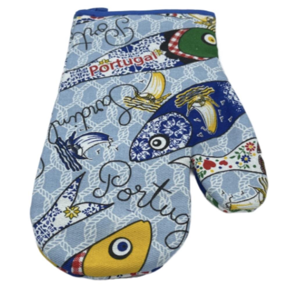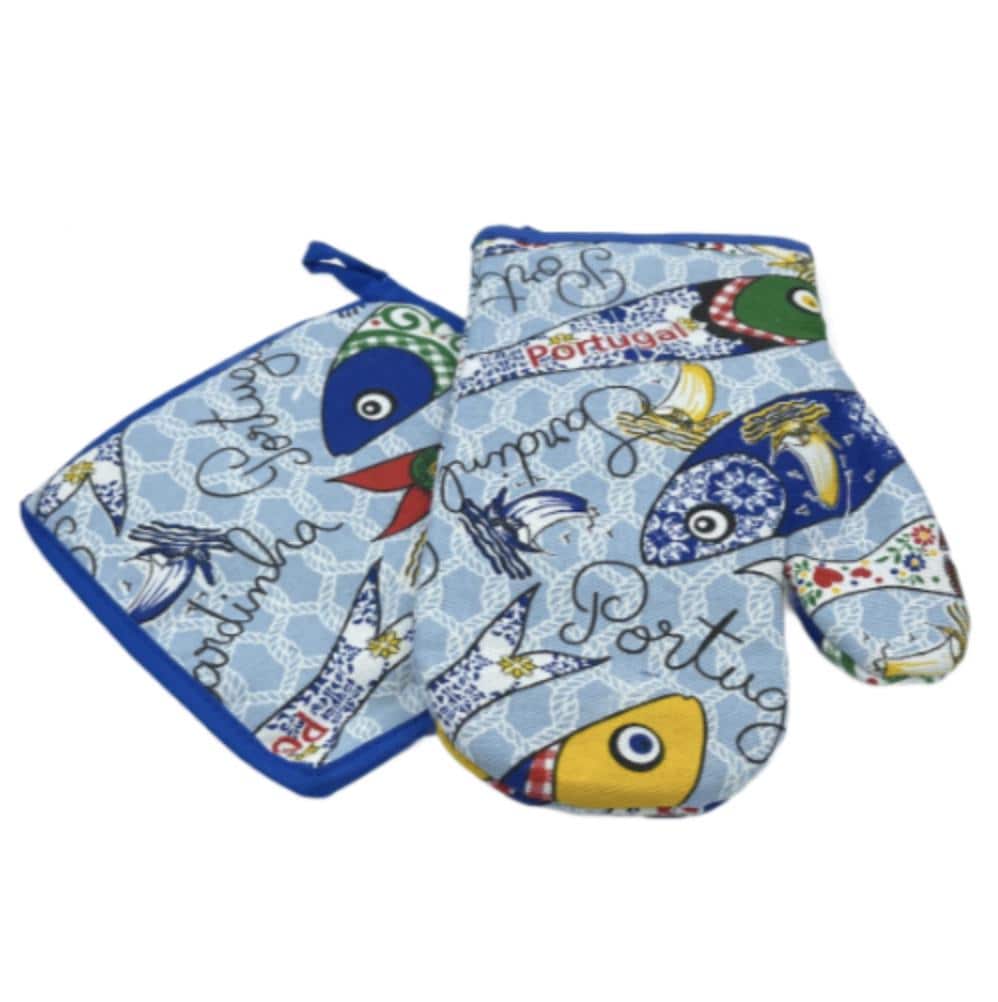 The oven mitt set is adorned with a charming design celebrating the beauty and diversity of Portugal.