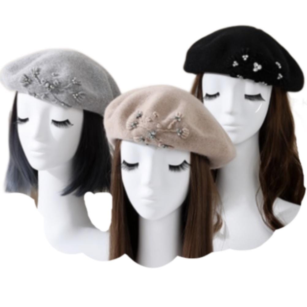 Unique Design Women's Wool Felt Beret with Pin Winter Casual Pillbox Hat
