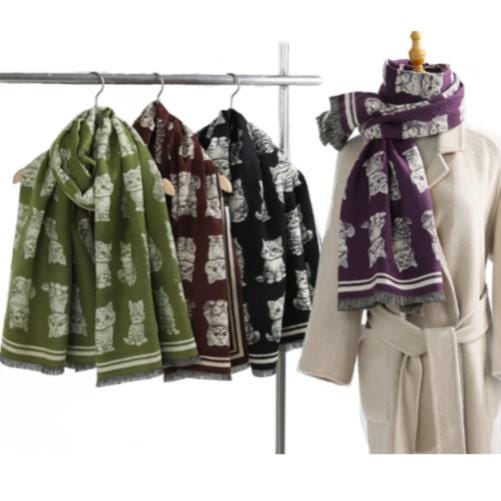 Stylish cat pattern scarf suitable for women of all ages.
