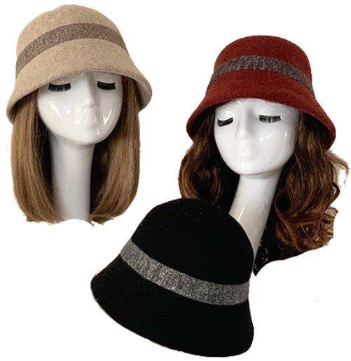 Women 100% Wool Cloche Bucket Hat Winter Beanie Hat Warm Cap