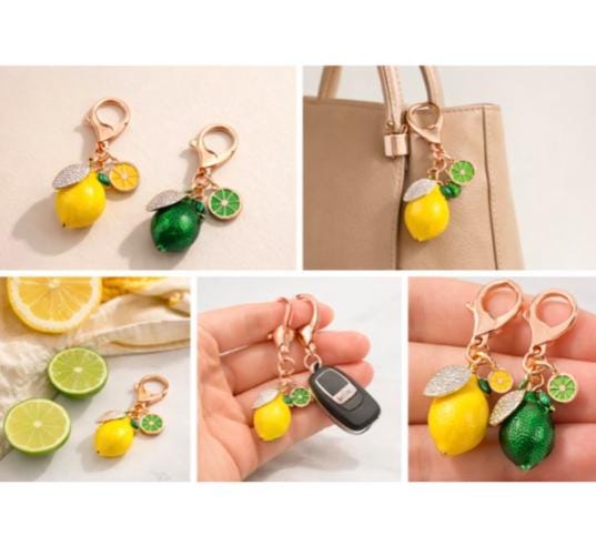 Rhinestone Bling Lemon or Lime with Gold Tone Key Chain Purse Charm