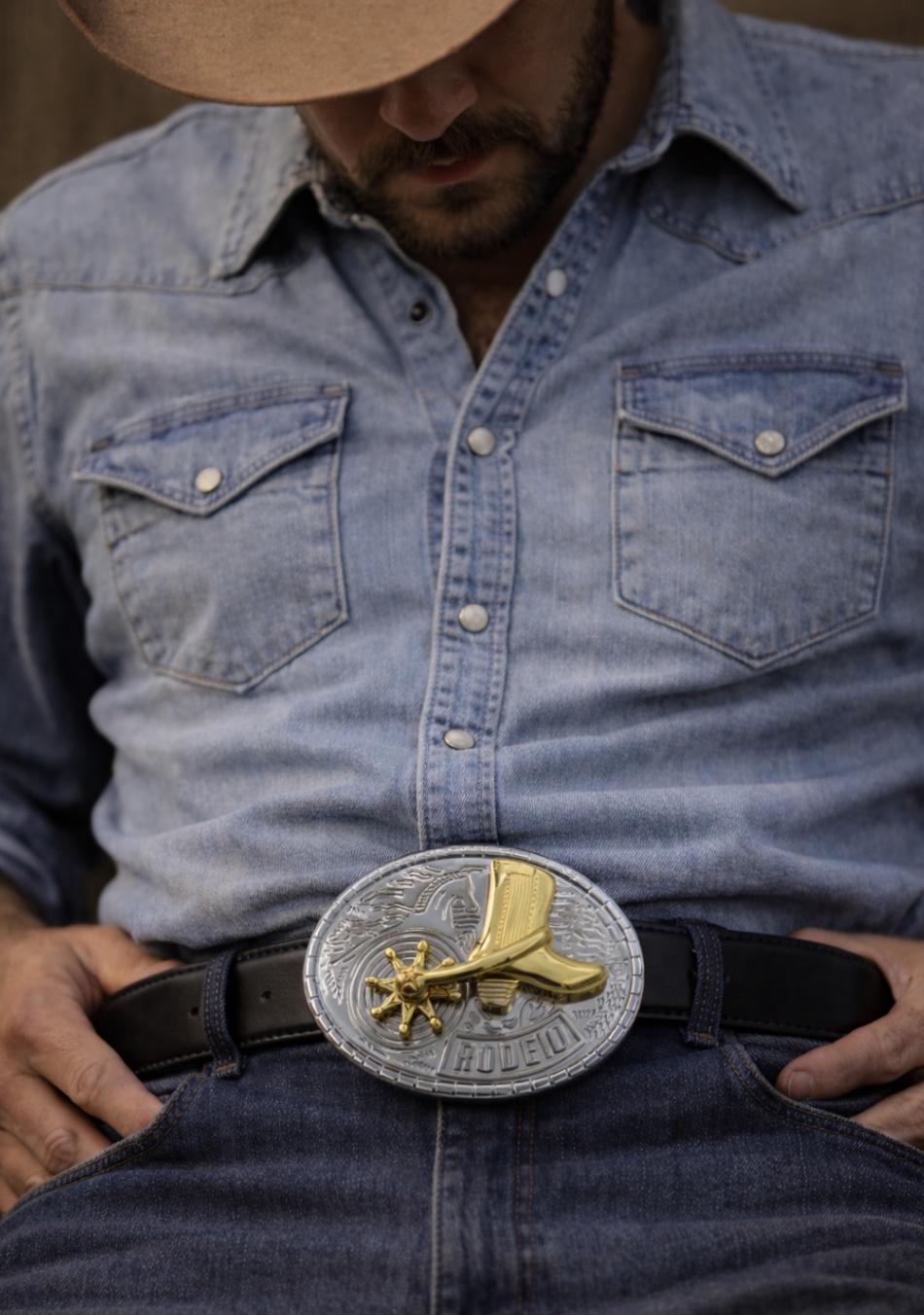 Beautiful Cowgirl Cowboy With Spinning Spur Belt Buckle.