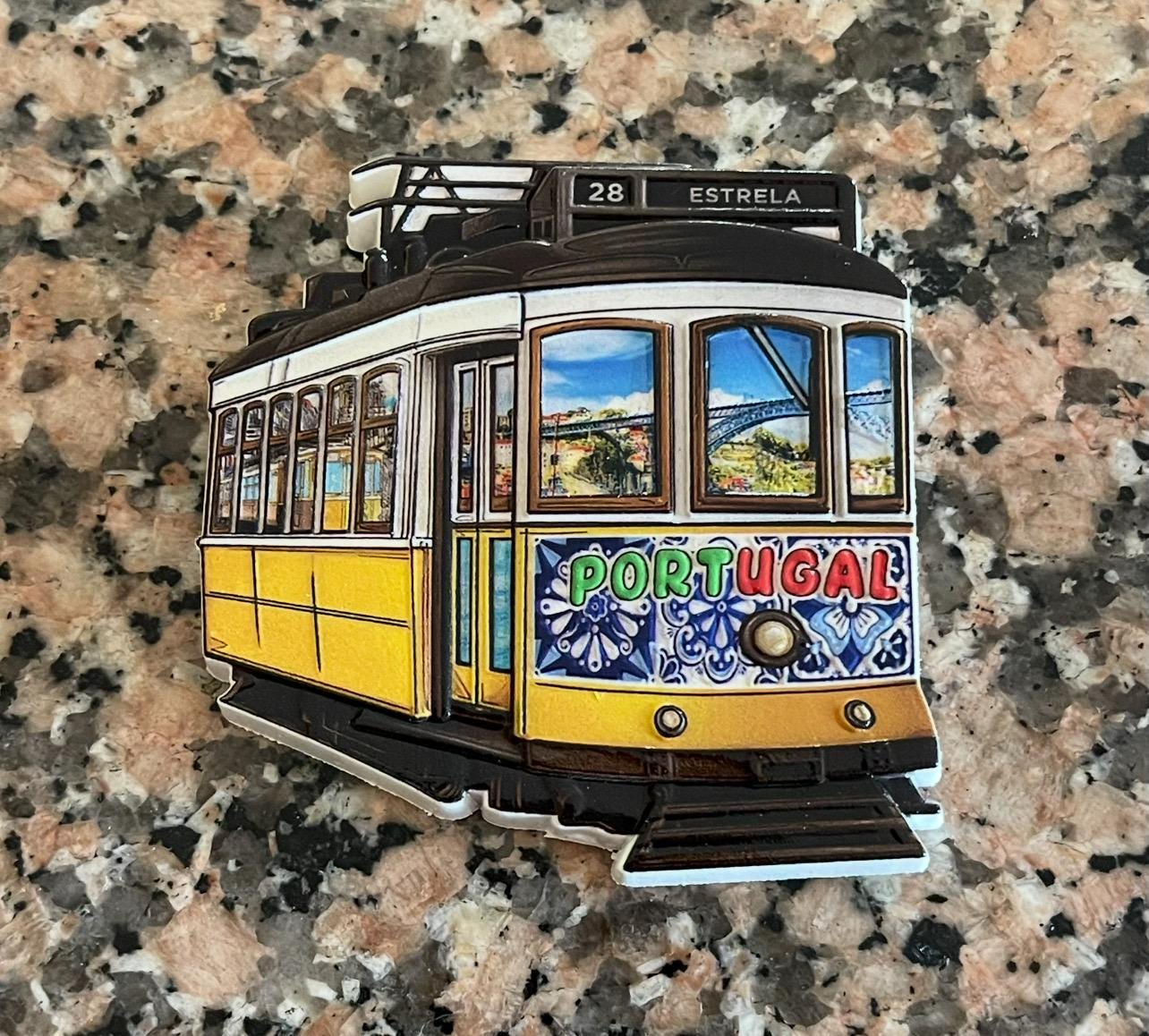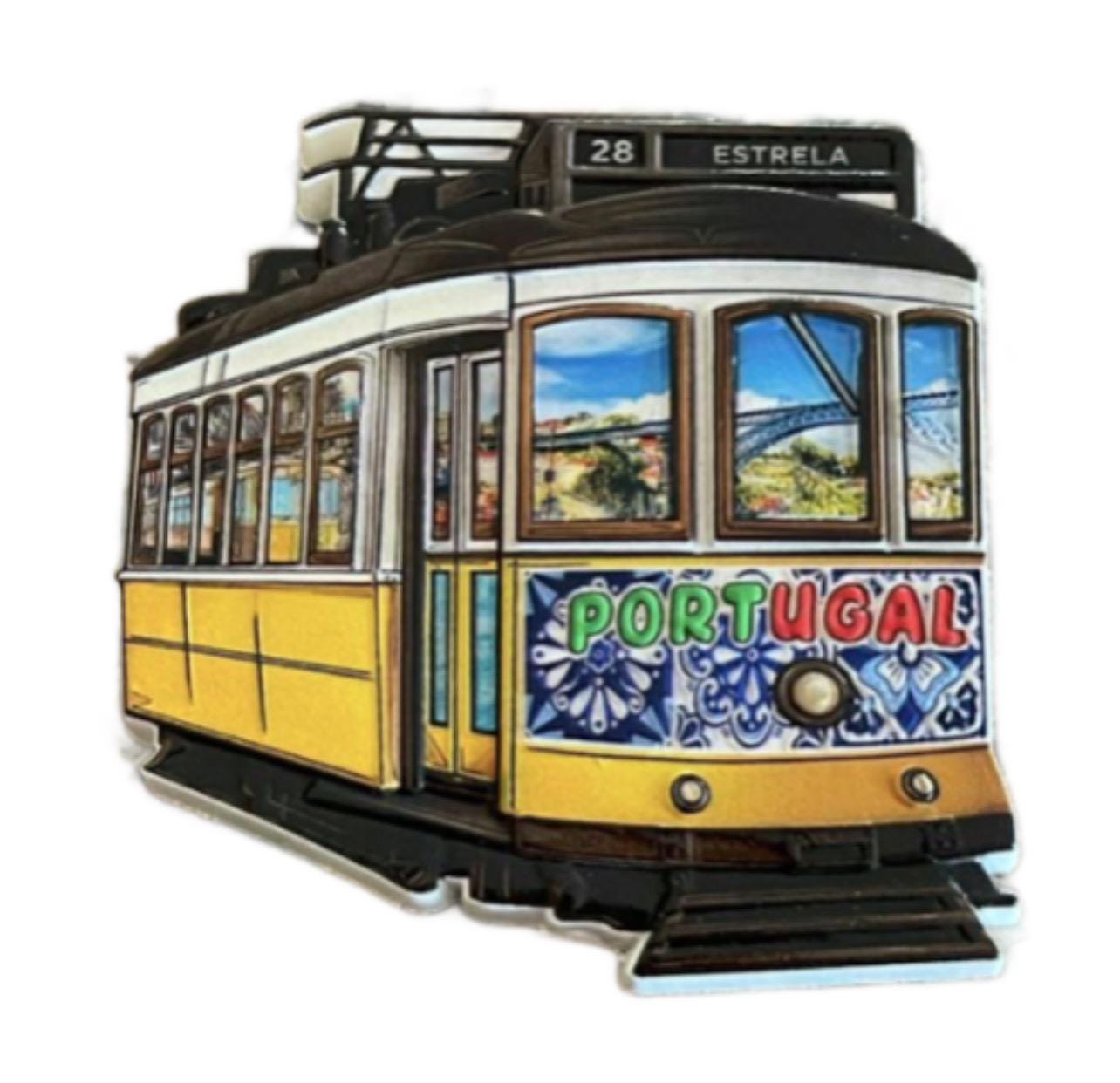Beautiful detailed fridge magnet with famous 28 yellow Lisbon tram