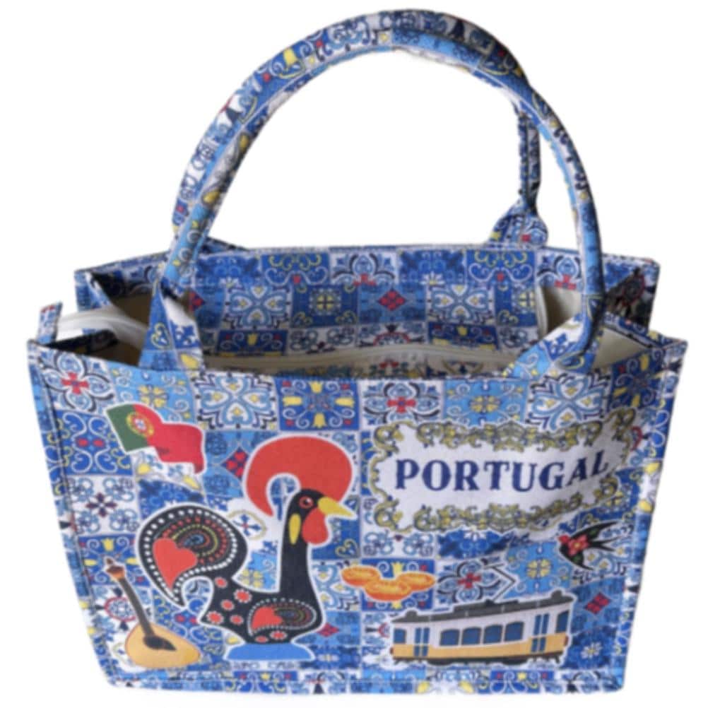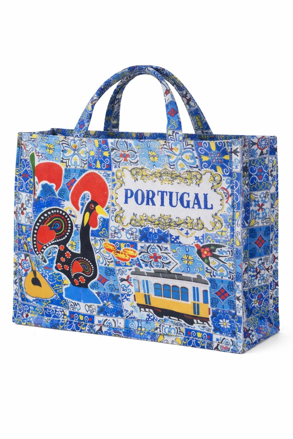 Explore the charm of Portugal with this vibrant and roomy tote bag, perfect for anyone who appreciates a blend of functionality and style. The exterior boasts an eye-catching yellow and multicolor design, inspired by traditional Portuguese tiles, with the iconic galo de Barcelos motif that adds a touch of national pride. Crafted from durable polyester, this tote is designed to withstand the daily rigors of work, travel, and social gatherings. Measuring 41 cm in width, 32 cm in height, and 13 cm in depth, this large tote offers ample space for your essentials. The interior is lined with a soft beige fabric, providing an additional layer of protection for your belongings. Versatile and suited for various occasions, from casual outings to more formal events, it's a must-have accessory for those with a penchant for Portuguese culture.