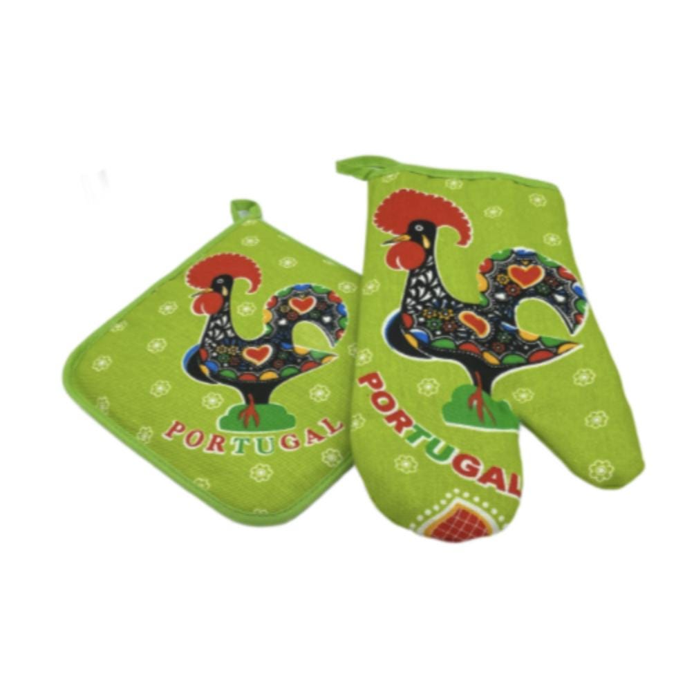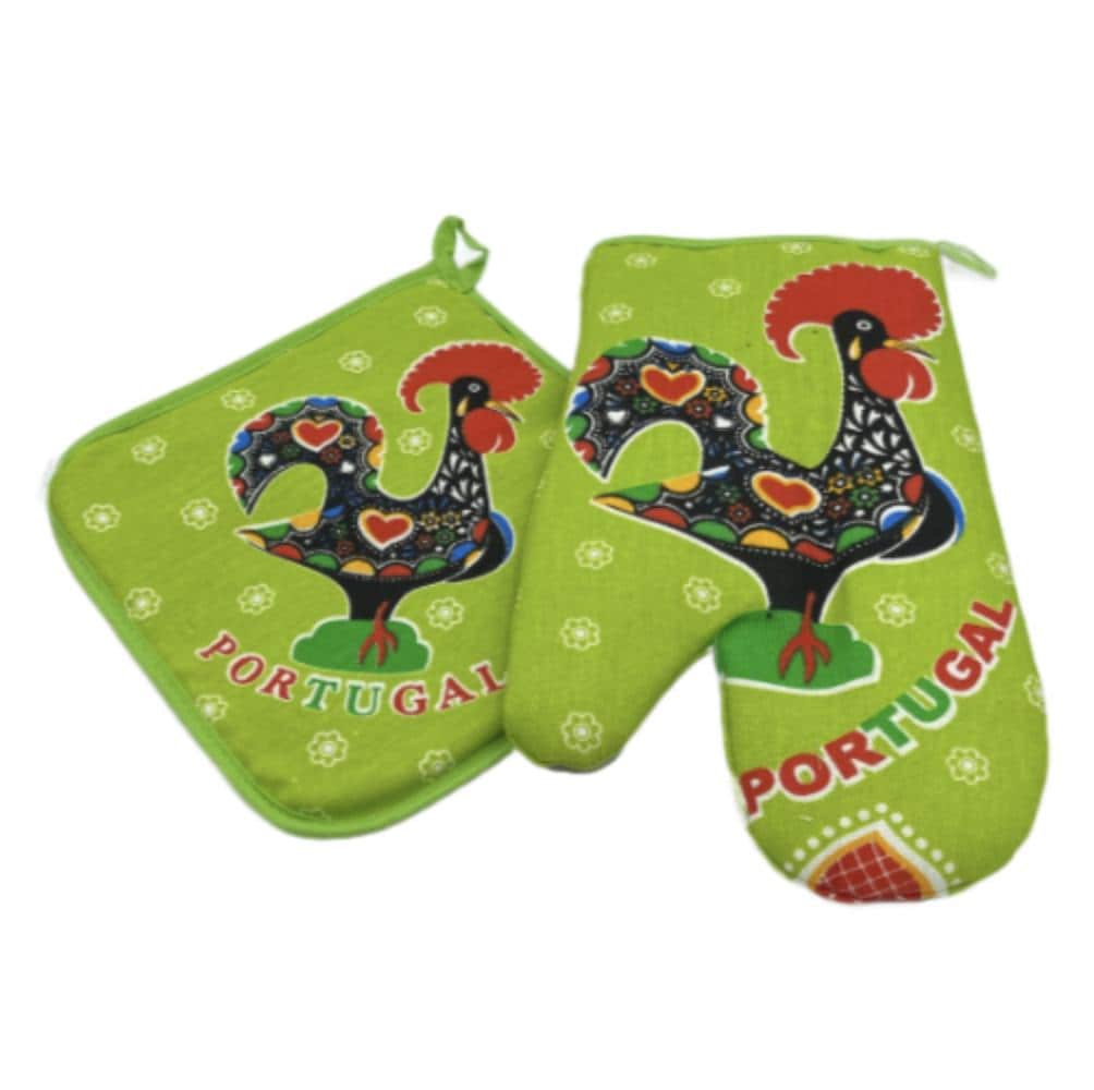100% Cotton Galo de Barcelos Portuguese Portugal Oven Kitchen Glove Mitt Set