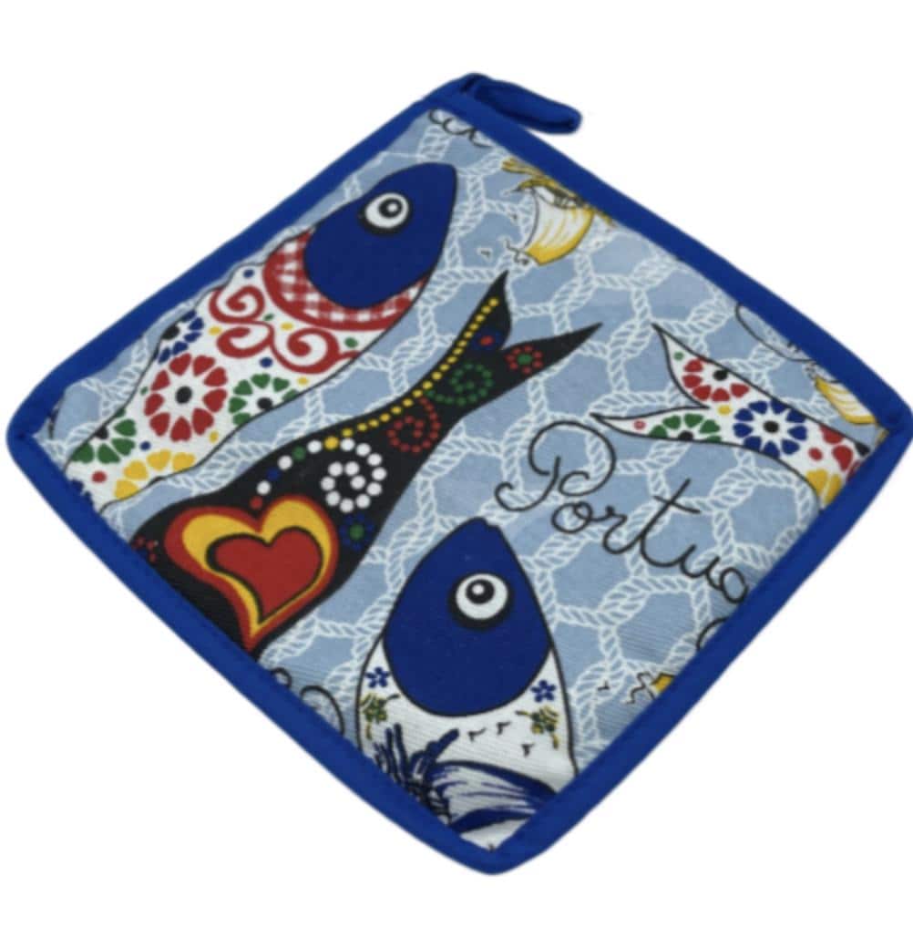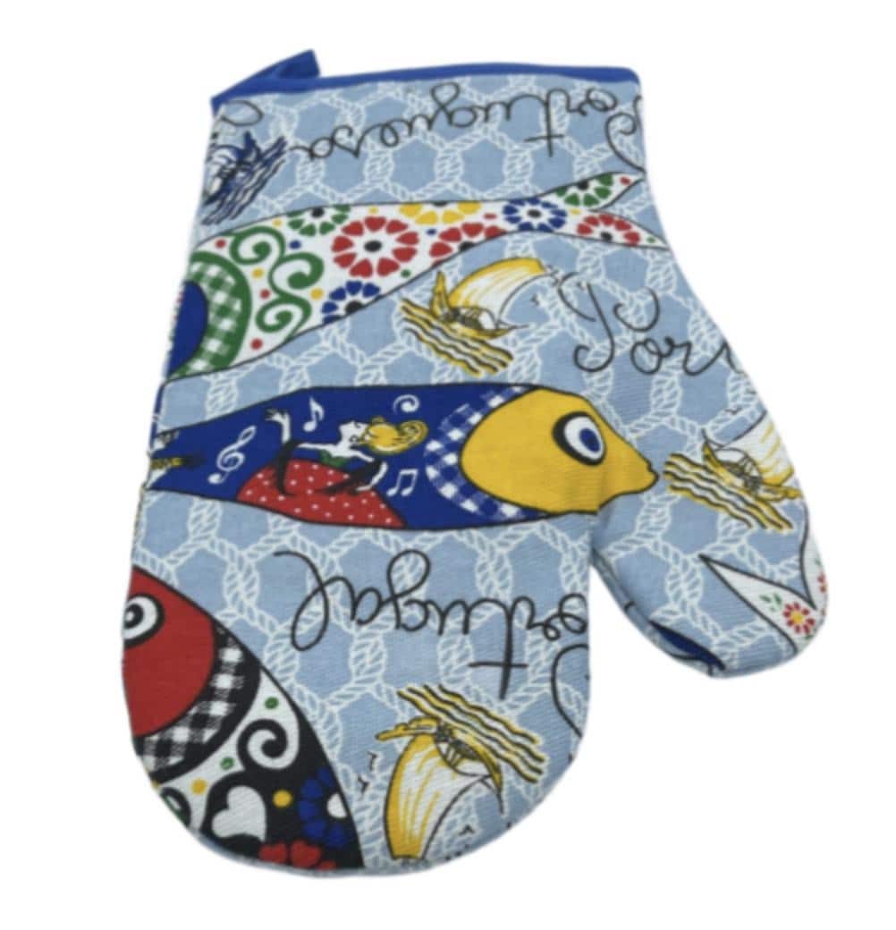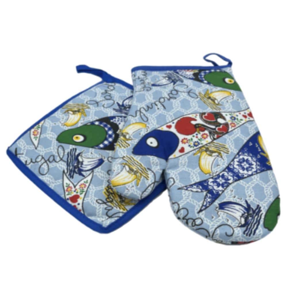 100% Cotton Traditional Portuguese Sardines Symbols Oven Kitchen Mitt Set of 2