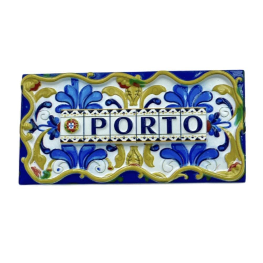 A cute souvenir from Portugal, a fridge magnet with beautiful Porto Portuguese tiles inspired designs