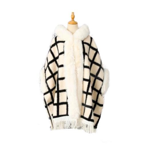Boasting a timeless checks pattern in a classic black and cream palette, this cape is the perfect blend of style and comfort. Crafted from plush fabric, it promises warmth on brisk days, while the luxurious faux fur trim adds a dash of sophistication. The fringed edges offer a playful twist to this refined piece. Ideal for elevating any outfit, this hooded cape is a versatile staple for those looking to make a fashion statement.