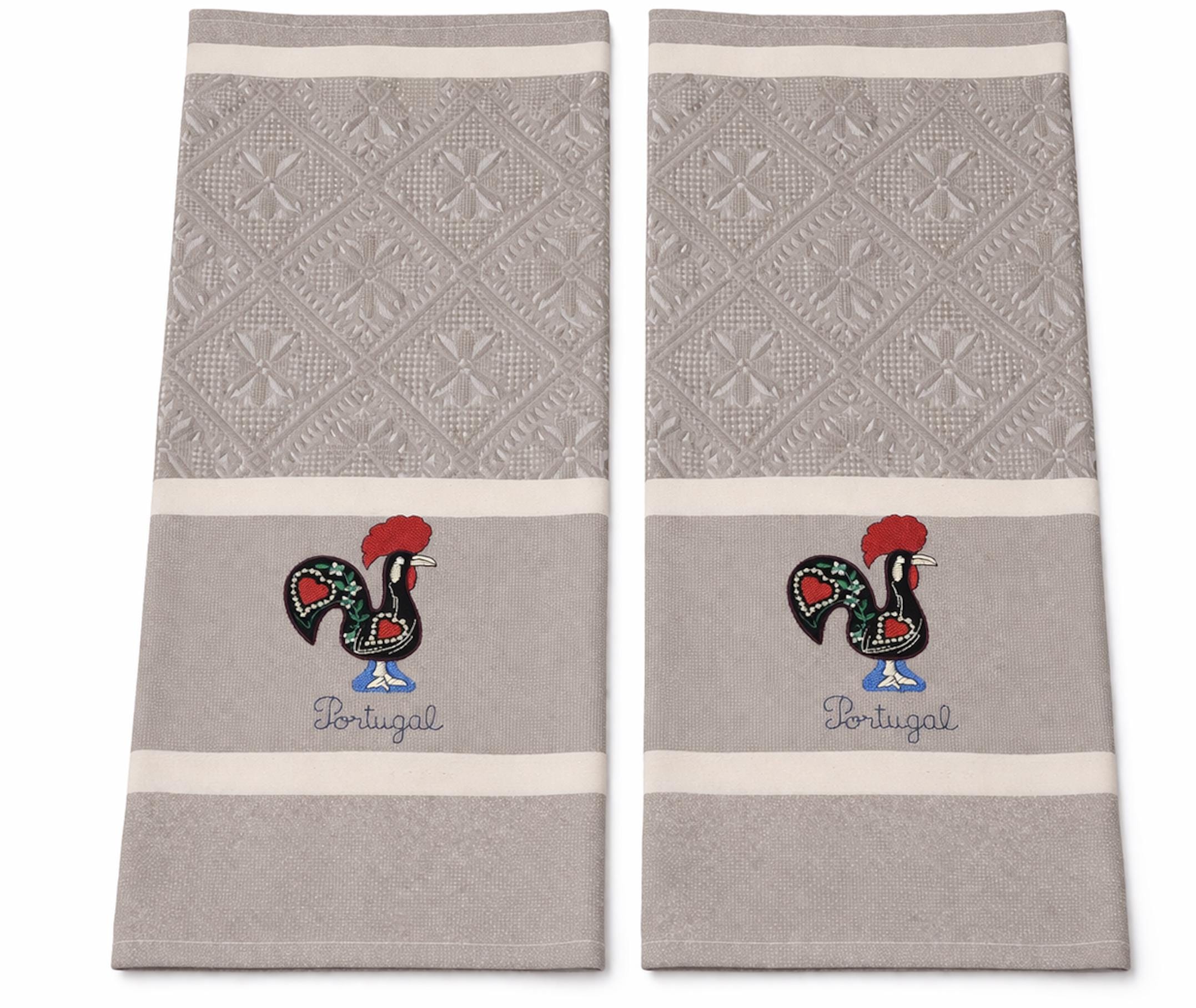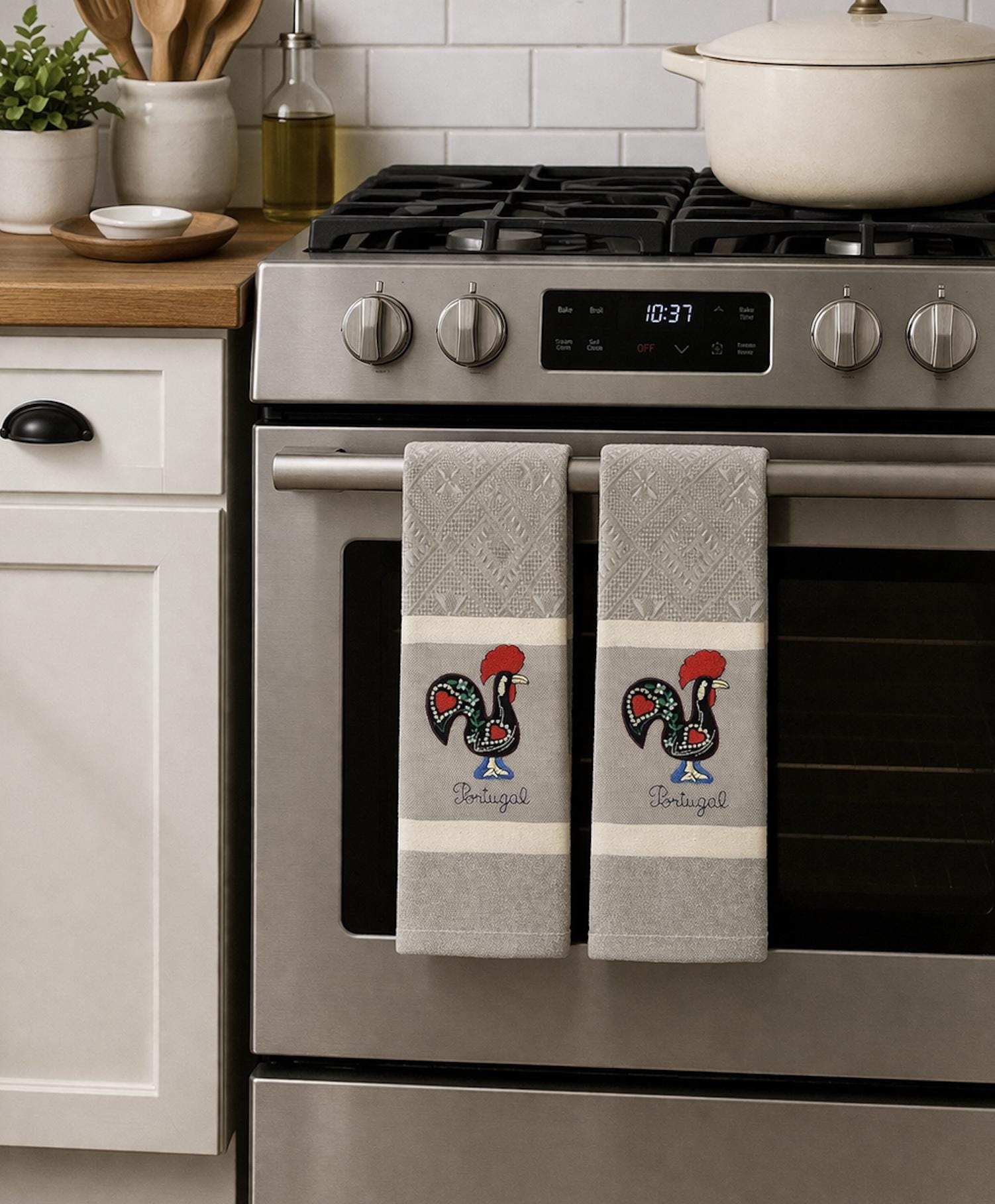Enhance your kitchen's charm with our Portuguese Rooster Embroidered Kitchen Towels. Made in Portugal from 100% cotton, this towel feature a beautifully embroidered traditional rooster design. perfect for hanging on a range handle or using as decorative kitchen flair. Embrace the beauty and culture of Portugal with every use!