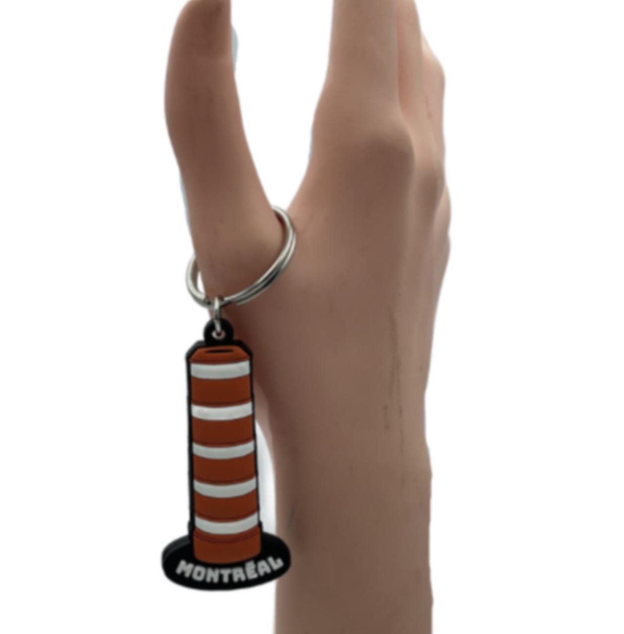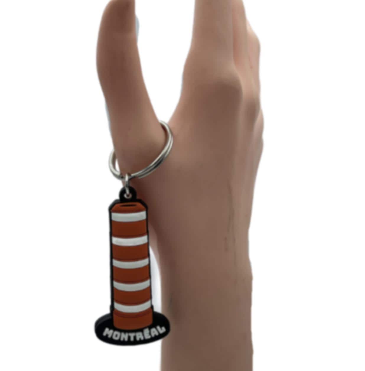 Crafted with a nod to both utility and whimsy, the Montreal Souvenir Orange Traffic Cone Key Chain is a unique accessory for your everyday essentials. Its vibrant orange hue and distinctive traffic cone character make it a standout piece that's sure to grab attention. Made in Canada with a durable rubber material, this key chain is designed to withstand the daily hustle and bustle. It's a practical yet playful addition to your keyring, reflecting a bit of Montreal's charm and practicality, without the fuss of handmade or vintage pretensions. Ideal for anyone who appreciates a blend of fun and function in their accessories.