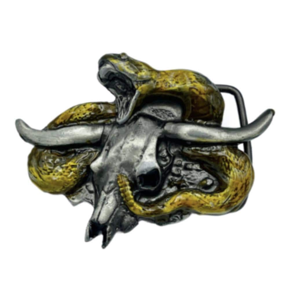 Longhorns Bull Skull Rattlesnake Snake Western Cowboy Belt Buckle