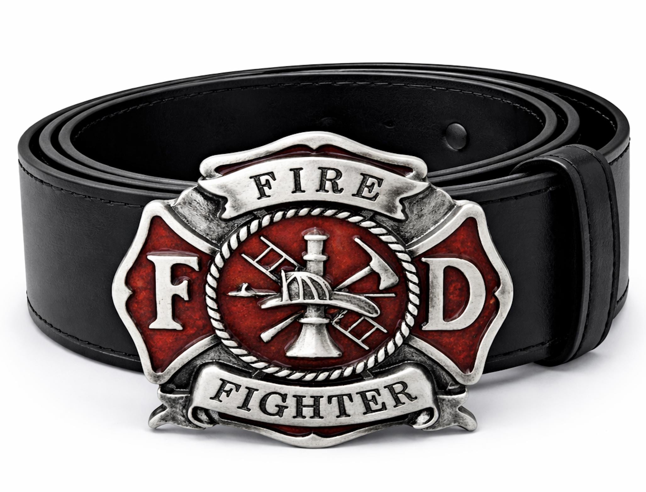 Firefighter's Belt Buckle fits belt 1.5 in (metric 4 cm) in width.