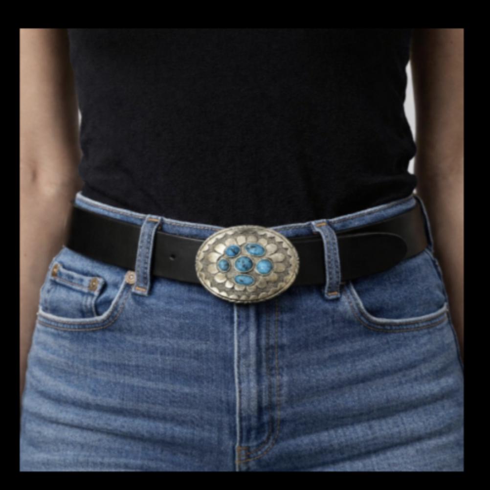 Floral Hippie Aztec Turquoise Stones Belt Buckle