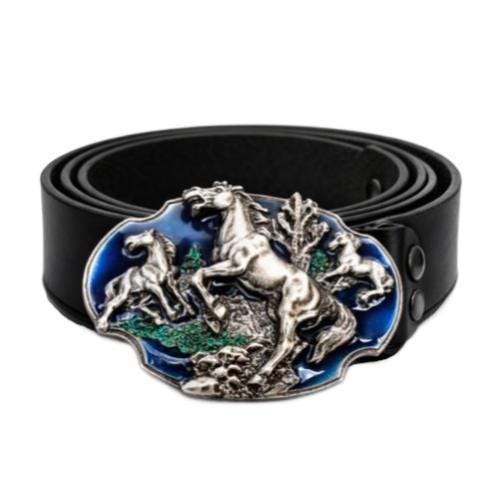 Belt Buckle Size: 2.5(h) x 3.5(w) inches Metric (6 x 8 cm) Belt Buckle fits belt 1.5" (metric 4 cm) in width.