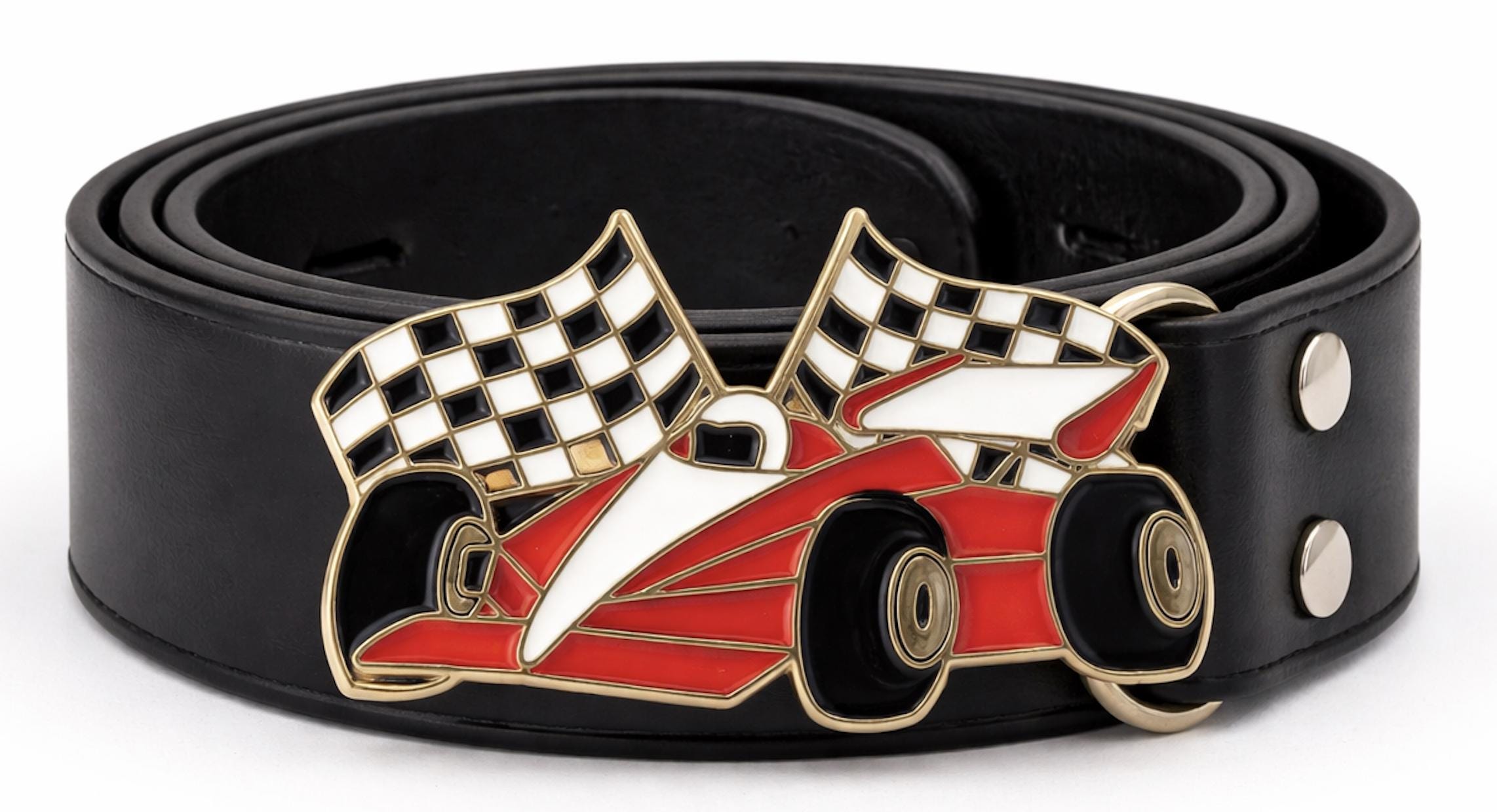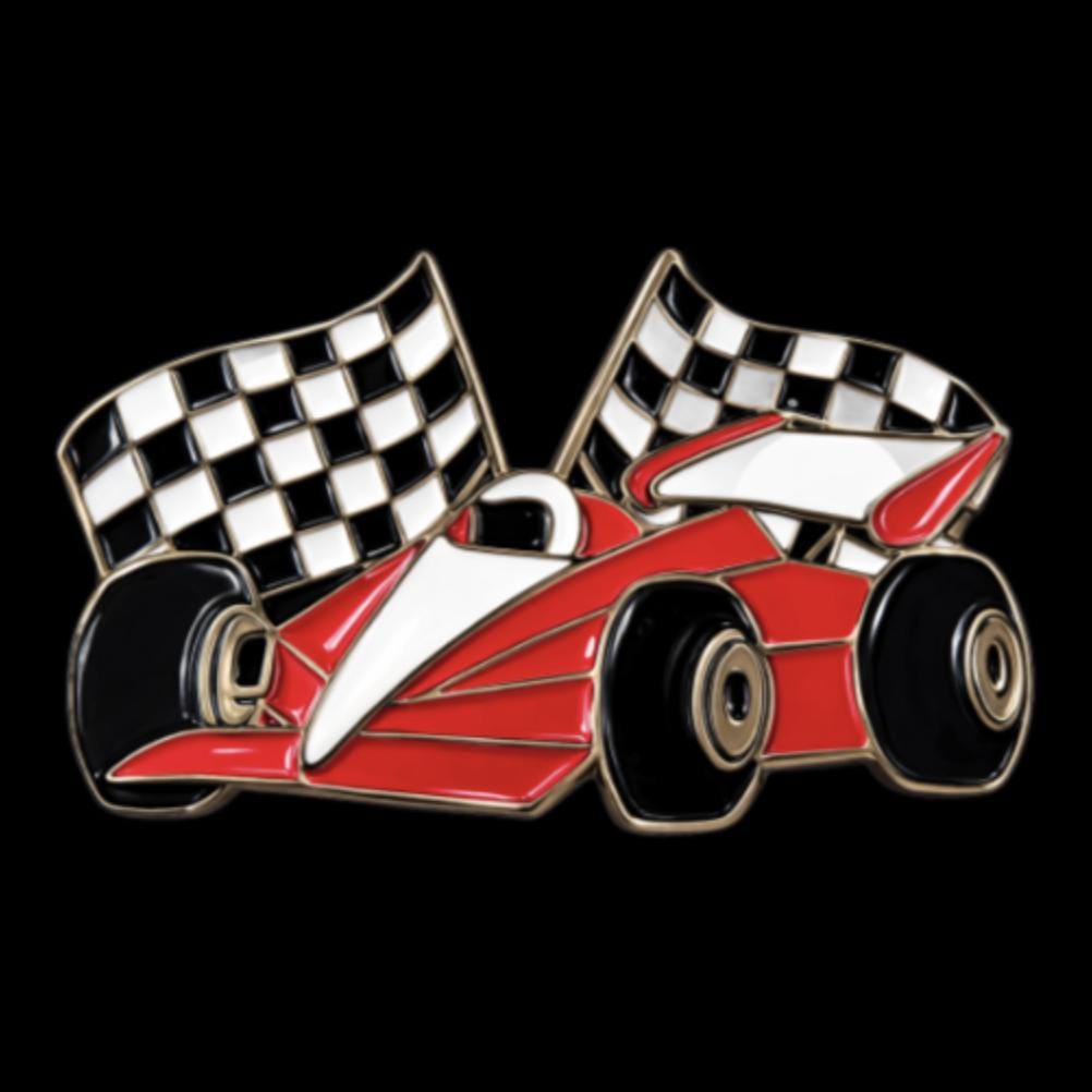 RED RACE RACING CAR VEHICLE CHECKERED FLAGS BELT BUCKLE