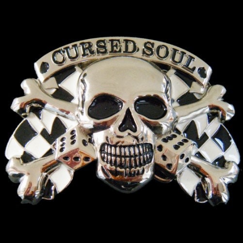 Cursed Soul Crossbones Skull Belt Buckle - Cool Skull Belt Buckle with checkered flag and dice.