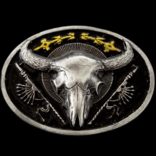 Uniquely crafted Western belt buckles featuring the iconic Texas Longhorn Cowsteers motif. provide American native art stylish adornment for belts.