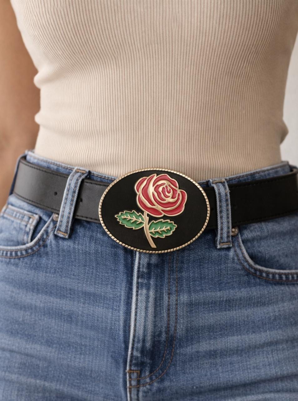 Red Rose Flower Western Belt Buckles