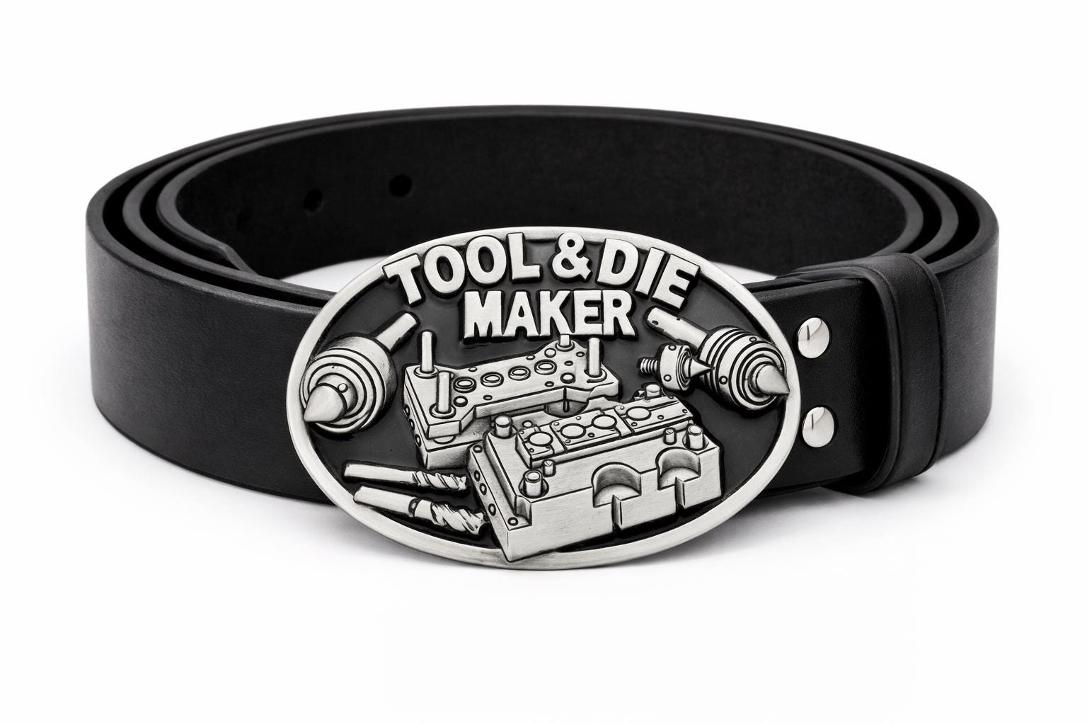 This Tool Die Maker Belt Buckle is an ideal visual representation for Machinery Operators, displaying the tools associated with their craft.