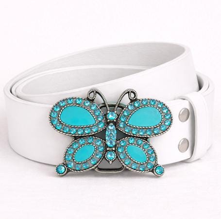 Butterfly Rhinestones Turquoise Butterflies Women’s Fashion Belt Buckle