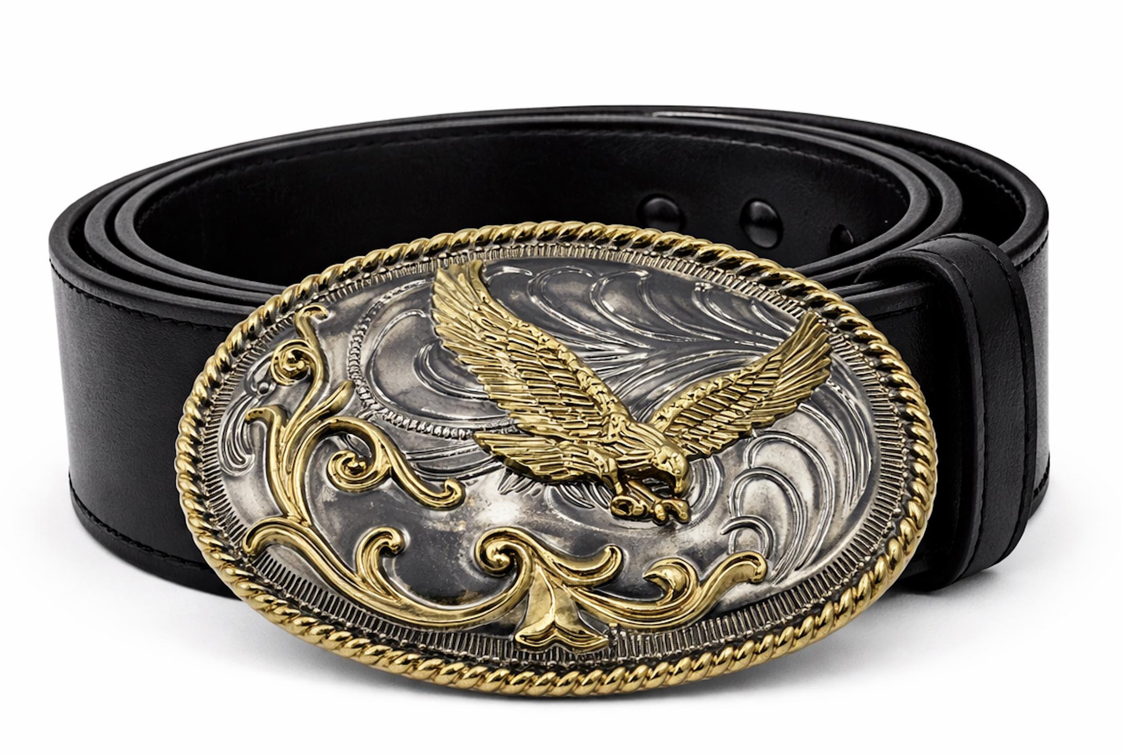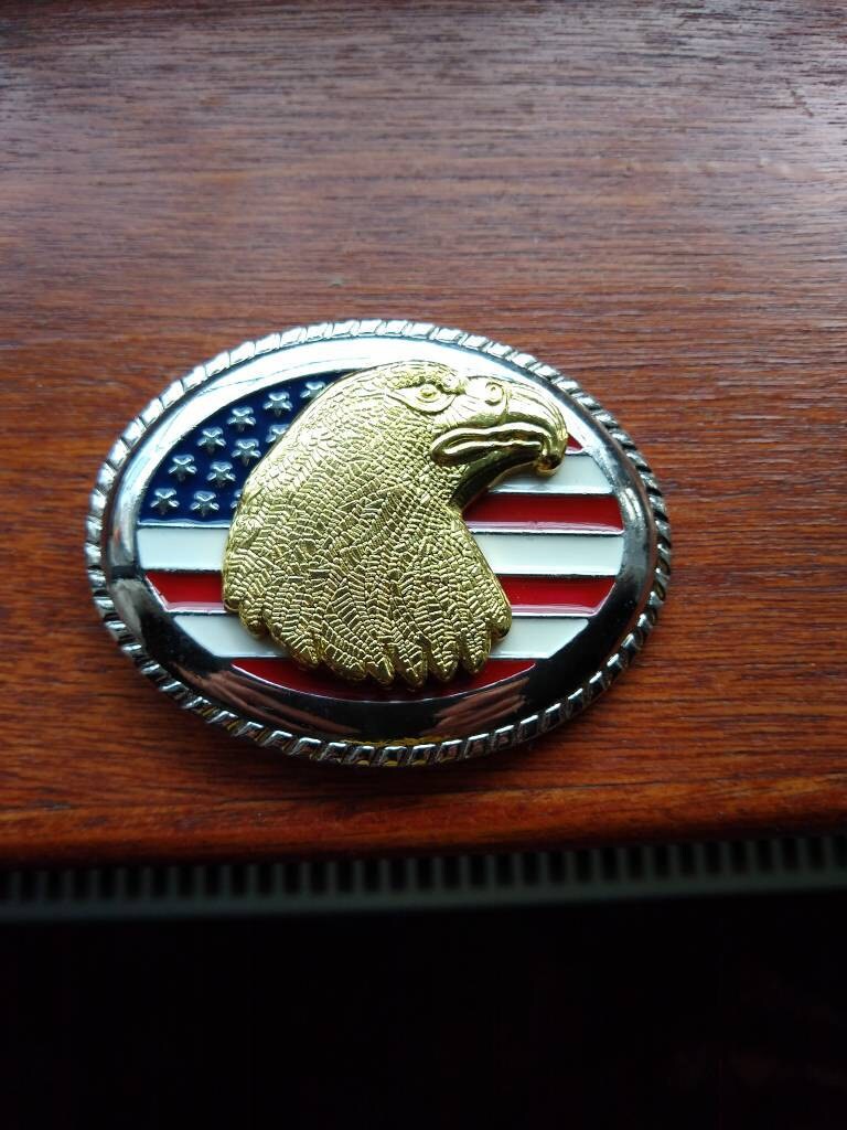 American Bald Flying Eagle Gold and Silver Plated Western Belt Buckle