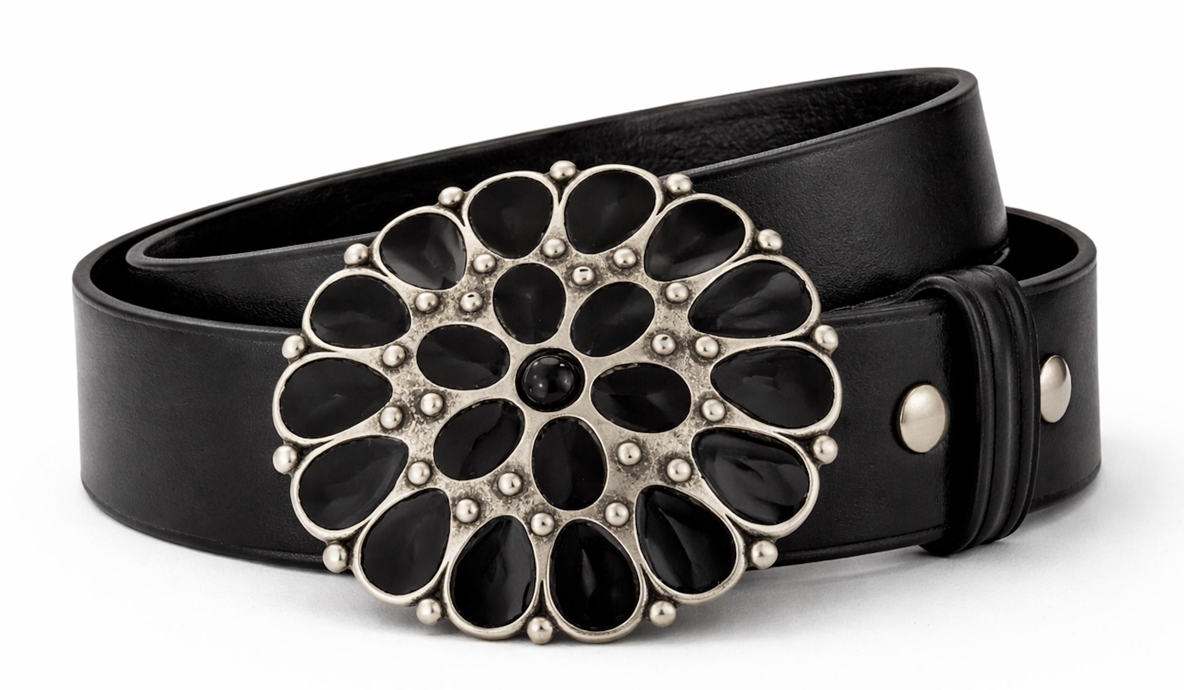 BLACK PETAL DAISY FLOWER FLORAL RHINESTONE WESTERN BELT BUCKLE BUCKLES !