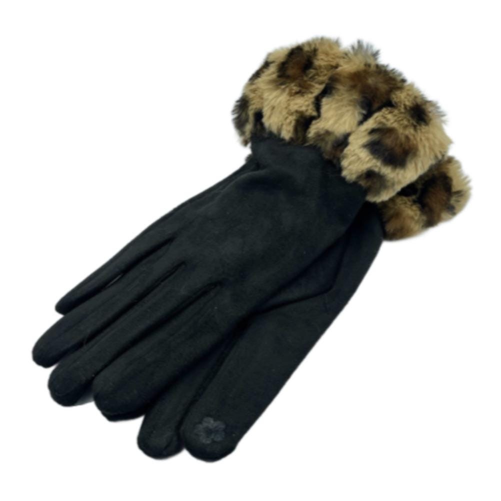 Women's Print Gloves Faux Fur Trim