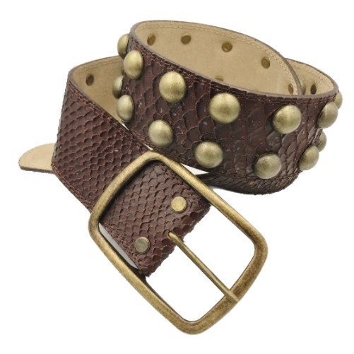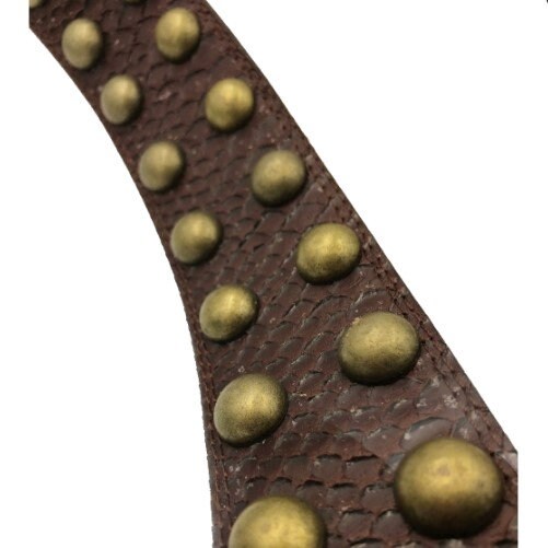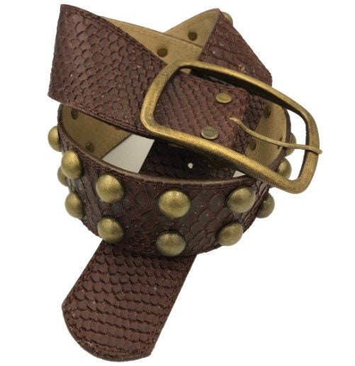 Bronze Studded Brown Belt Buckle Faux Snakeskin Pattern Finish Size Medium